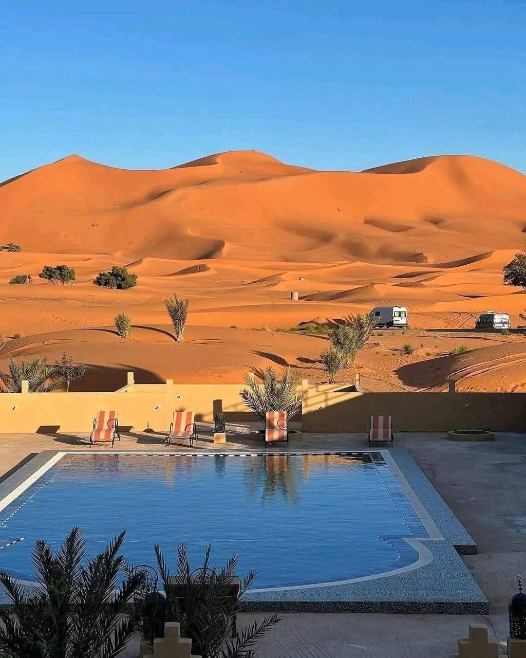 Travel along the spectacular Ziz Valley, lined with palm groves and fortified ksars. Reach Merzouga, the gateway to the Sahara. Ride camels into the dunes of Erg Chebbi, watching the sunset before enjoying dinner and overnight in a desert camp under the stars.
