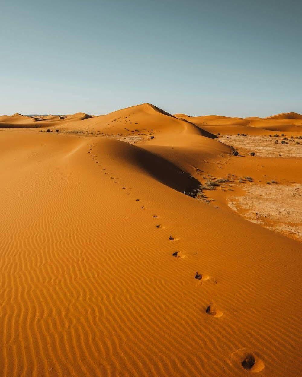 Wake up early to watch the sunrise over the dunes, a magical desert moment.