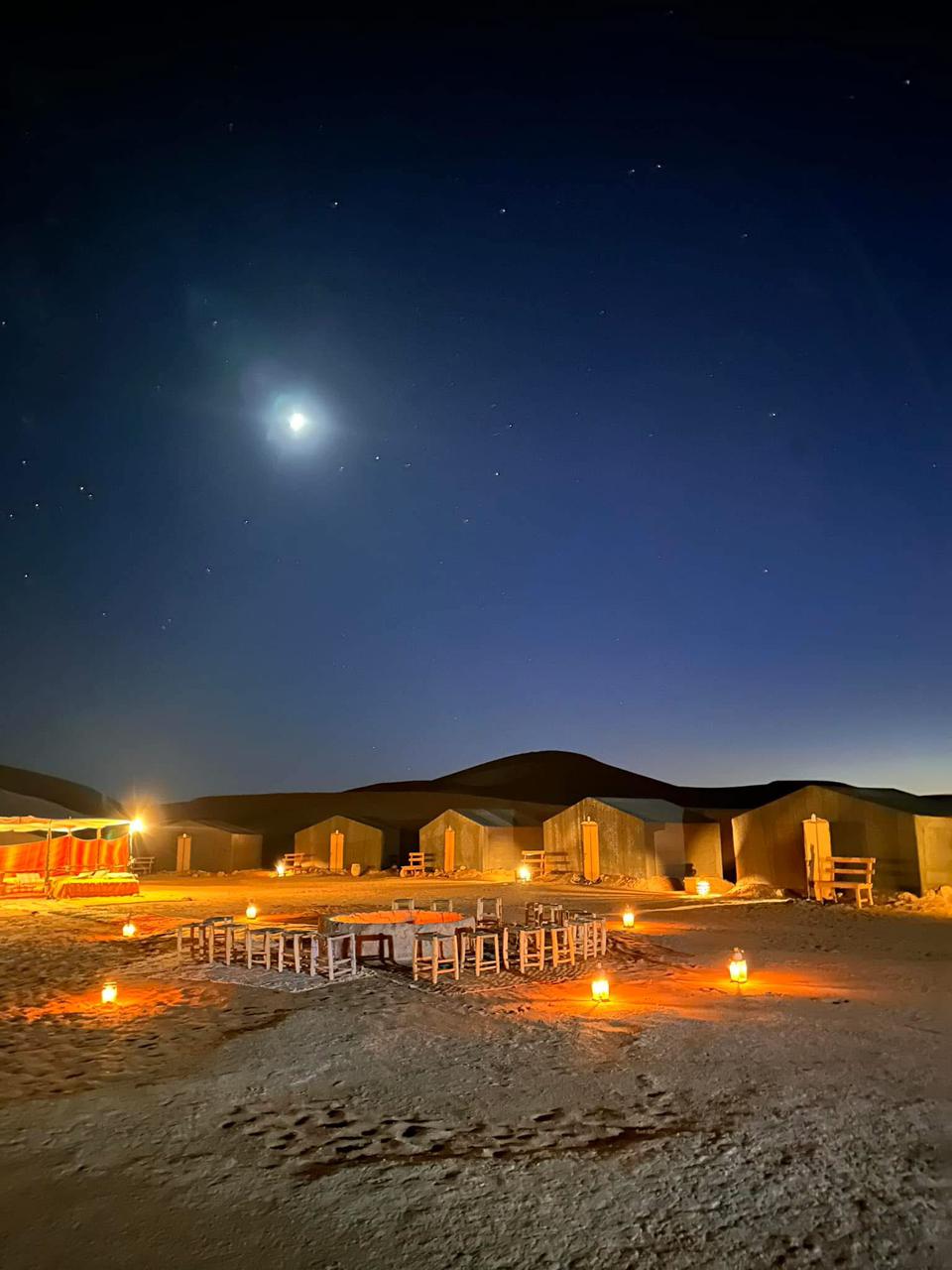 Dinner and overnight in a Berber desert camp, with music around the campfire under a sky full of stars.