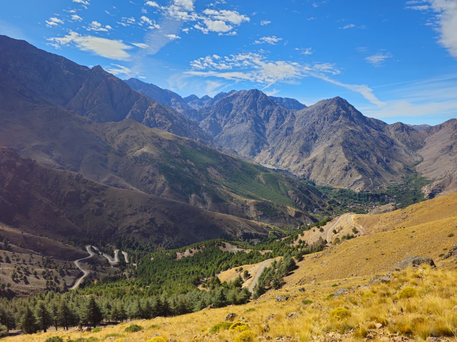 After breakfast, climb steadily through juniper and pine forests to the Tizi M’Zik pass (2,400 m). From here, you’ll be rewarded with breathtaking views of the High Atlas peaks and valleys. After lunch, descend into the Imlil Valley, the trekking hub of the Toubkal region. Overnight in a comfortable guesthouse in Imlil.